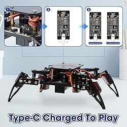 BEGINNER-FRIENDLY CODING - Perfect for ages 10+! Master programming logic & hardware principles systematically with 8 step-by-step lessons. Features an ESP8266 motherboard & custom servos, making learning intuitive and sparking creativity through hands-on building. DYNAMIC MOVES & COOL ACTIONS - Bring your DIY science robot to life! Enjoy 6 movement modes and 9 preset dazzling actions – watch your spider bot perform captivating, lifelike maneuvers for endless entertainment. EFFORTLESS ASSEMBLY, DURABLE BUILD - Hassle-free construction! Uniform screws simplify installation. Powered by rugged MG90 metal gear servos for smooth movement and long-lasting durability EXTENDED PLAY, EASY CHARGING - Play longer, charge less! Features Type-C direct charging and a high-capacity rechargeable design (a 18650 Battery Required, Not Included), minimizing downtime for uninterrupted fun. SMART APP CONTROL & PERFECT GIFT - Command your spider remotely via the ACEBOTT App! Unlock interactive exploration. Includes HD assembly guides & detailed coding tutorials– the ultimate STEM gift for kids, teens, and adults. (The path is: ACEBOTT Official Website - Resources - WIKI and Assembly Video.)