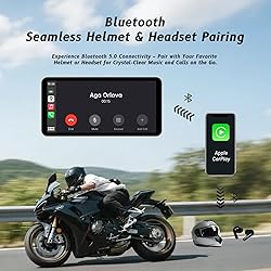 🏍【Wireless CarPlay & Android Auto – Ride Smarter】 Seamlessly connect your phone via wireless CarPlay or Android Auto. Access navigation, music, calls, and messages hands-free for safer, smarter rides every time. 🏍【IP67 Waterproof & Dustproof – Built for the Road】 Certified with IP67 waterproof and dustproof rating, this display is ready for rain, mud, and rugged terrains. Ride confidently in any weather condition. 🏍【6-Inch HD Touchscreen – Clear in Sunlight】 Features a bright, anti-glare display designed for outdoor visibility. Sunlight-readable, glove-friendly touchscreen ensures smooth control even under direct sunlight. 🏍【All-Weather Performance – Extreme Temperature Resistant】 Engineered for durability in extreme climates, this unit works reliably in temperatures ranging from -4°F to 158°F (-20°C to 70°C). Perfect for summer heat or winter rides. 🏍【Wide Motorcycle Compatibility – Plug & Play Setup】 Designed to fit most motorcycles including cruisers, sport bikes, scooters, and adventure bikes. Comes with universal mounting hardware for fast and hassle-free installation. 🏍【Bluetooth Voice Assistant – Hands-Free Control】 Connect via Bluetooth and activate Siri or Google Assistant with your voice. Control music, answer calls, or get directions without taking your hands off the handlebars. 🏍【OTA Firmware Updates – Always Up to Date】 Supports over-the-air updates, so your device stays current with the latest features and improvements. No cables or computers needed—just update via Wi-Fi.