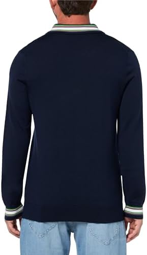 Made from soft and breathable wool blend, this long-sleeve knitted polo features a mixed-stripe pattern on the cuff and the collar. This polo comes complete with a zipper placket.