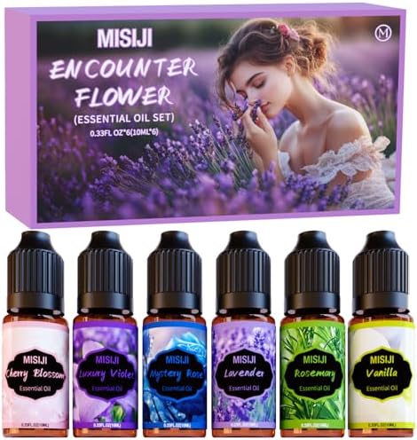 MISIJI Essential Oils Set for Diffusers for Home,Encounter Flower Kit-Cherry Blossom, Mysterious Rose, Rosemary, Vanilla, Lavender, Luxury Violet