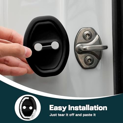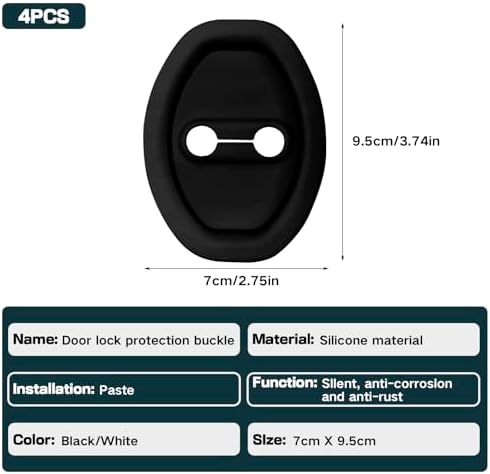 4Pcs Door Latch Lock Cover, Anti-Rust Silicone Car Door Lock Protector, Silent Shock Absorption Pad, Universal Self-Adhesive Door Lock Latch Guard Protection for Most Vehicles (Black)