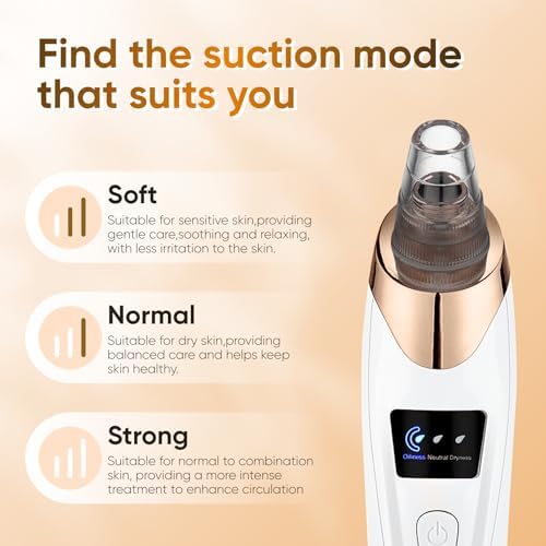 - 【Convenient Rechargeable Design】:Equipped with a built-in USB rechargeable battery, our blackhead remover ensures long-lasting performance with a single charge. Easily monitor your suction level and battery status on the clear display for worry-free use.