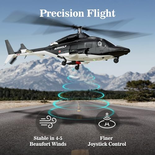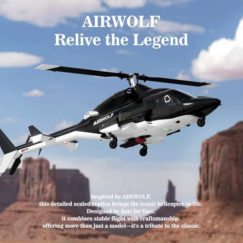 - Beginner-Friendly Flight Modes - Switch between auto-hover and manual modes with the 6-channel controller, featuring co-axial dual motors, 6-axis gyro, and 1200KV brushless power. Perfect for beginners to achieve stable flight (even in 15mph winds) and recreate Airwolf's signature "storm penetration" maneuvers.