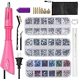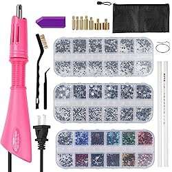 - Features: Hot fix applicator tool set - 1 hot fix applicator stick, 7 hot fix tips, 1 diamond plastic bowl, 1 cleaning brush, 1 stand, 1 jewelry tweezers, 2 wax pens, 3 boxes of colored crystal stones, 1 storage bag for crafts and decoration.Rhinestone kit - this can add sparkling rhinestones to your items, including clothes, wallets, mobile phones, belts, dolls, scrapbooks and more. It works with materials that need to be able to absorb the adhesive when melted, such as leather, paper, card, wool, cotton, linen, viscose, tulle, denim, lycra, cotton jersey, silk, synthetics (polyester, etc.). Specifications: Product size: as shown Color:purple,pink Notes:Due to the different monitor and light effect, the actual color of the item might be slightly different from the color showed on the pictures. Please allow 1-3cm measuring deviation due to manual measurement. Thank you for your understanding! Packing List: 1 x Hot fix applicator stick7 x Hot fix tips 1 x Diamond plastic bowl1 x Cleaning brush 1 x Stand 1 x Jewelry tweezers 2 x Wax pens 3 Box x Colored crystal stones 1 x Storage bag
