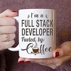 - Whether you're a Full Stack Developer tackling challenges or just surviving Monday meetings, this mug understands you. The: I'm a Full Stack Developer. Fueled by coffee. Design brings a smile with every sip. It's the ultimate companion for busy professionals who rely on a good cup of coffee to get through the day.This high-quality 11oz white ceramic mug is microwave and dishwasher safe, making it as practical as it is entertaining. Whether you're treating yourself, thanking a coworker, or surprising a friend, this mug makes a perfect gift for birthdays, office events, or appreciation days.Celebrate the grind (and the caffeine that fuels it) with a mug that says exactly what we’re all thinking.