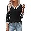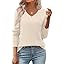Zeagoo Women's 2025 Fall V Neck Sweater Trendy Long Sleeve Casual Lightweight Ribbed Knit Pullover Tops