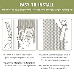 Compatible with Andersen Doors From 1982 To Present: The sliding screen door handle replacement can be used to replace broken or missing handles on Andersen sliding screen doors manufactured from 1982 to the present date. It's designed to fit the Andersen Frenchwood, Narroline or Perma-Shield Two-Panel/ Three-Panel Gliding Patio series doors. Screen Door Hardeare Kit Includes: 1 x Interior Pull, 1 x Exterior Pull,1 x identification plate, 2 x 1"Screws, 2 x 0.6"Screws. Includes enough pieces for one Andersen patio screen doors repaired. Easy to Install: Come as a complete screen door pull replacement kit, it's easy for you to remove the old one and install the new handle with just a screwdriver.Simple installation allow the handle to restore smooth operation to your screen door. (Screwdriver are not included in our package) Durable and Weather Resistant: The sliding screen door hardware kit are crafted from durable materials that resist damage from sunlight, rain, and temperature fluctuations.The rugged plastic construction ensure long lasting performance in outdoor enviroments. Product Dimentions: The screen door parts fits for non-handed for left or right-handed sliding doors that have 2-1/8 inch on center mounting holes, come with two stainless steel screws. Please check the size compare with your needs before purchasing for compatibility and an effortless fit.