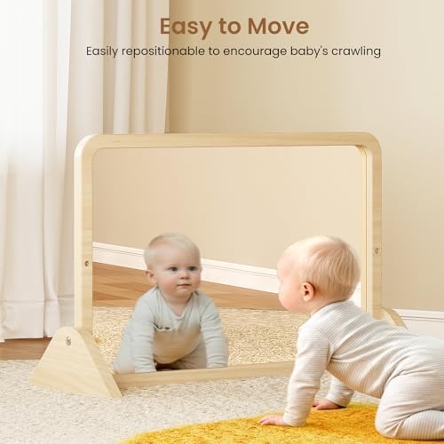 - 3-in-1 Montessori Mirror: Great suit for tummy time, standing practice & self-discovery! Use flat on floors to encourage crawling, mount horizontally as a toddler mirror for pull-up practice, or stand vertically for dressing/play. Adapts seamlessly as your baby grows from 6 to 18+ months.