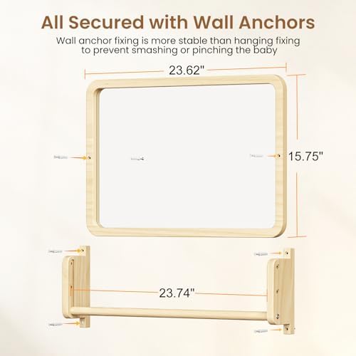 - Safe Natural Materials: Crafted from smooth, unfinished pine wood (no toxic paint!) + shatterproof acrylic mirror for kids. Anti-rotation grooves prevent bar spinning, while rounded edges protect delicate hands. Meets rigorous US toy safety standards.