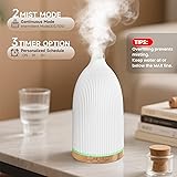 Elegant Wood Grain Base & Ceramic-Like Design – Features a stylish wood grain base with a sleek, textured plastic upper body that mimics high-end ceramic, blending seamlessly with any home or office decor. Creating a soothing ambiance in your bedroom, living room, office, or even for your travel. Ultra-Quiet Ultrasonic Technology & BPA Free – Whisper-quiet operation ensures peaceful relaxation, perfect for bedrooms, nurseries, or meditation spaces. This essential oil diffuser is made from high-quality, BPA-free materials, ensuring the safety of both you and the environment. Auto Shut-Off & Adjustable Mist Modes – Automatically turns off when water runs low for worry-free use. Choose between continuous or intermittent mist modes to control fragrance intensity and humidity levels. With a 100ml capacity, it provides an ideal balance between runtime and compact design. 7-Color LED Lights with Customizable Settings – Features soft rotating color-changing LEDs that can be fixed on your favorite hue or turned off completely. The light and mist functions work independently, allowing you to use it as a calming night light without diffusion. Premium Aromatherapy Experience & Thoughtful Gift Choice – Efficiently fills your space with soothing essential oil scents to enhance mood and promote relaxation, making it the perfect gift for spa lovers, wellness enthusiasts, or as a housewarming, birthday, or holiday present.