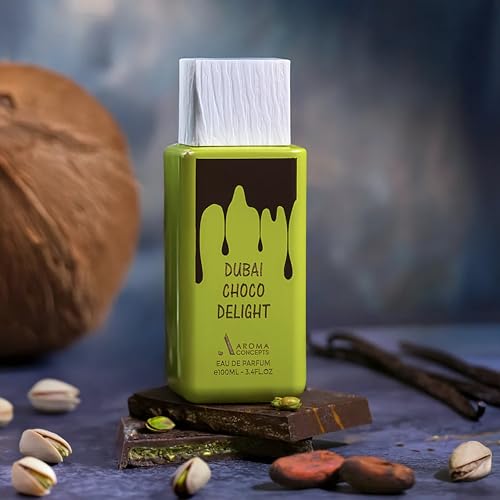 AROMA CONCEPTS | Dubai Choco Delight Eau De Parfum 3.4 Fl Oz | Luxurious Gourmand Vanilla Pistachio Chocolate Perfume for Men & Women | Sweet Woody Musk Scent with Caramel & Cocoa
