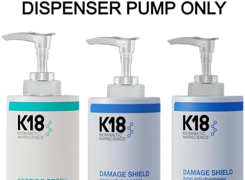Must Have Dispenser Pumps Custom Made to fit K18 8.5oz 250ml Shampoo & Conditioner Bottles. With the K 18 Bottles being so stiff, these pumps make your K-18 Shampoo easier to use in the shower or at the salon backbar. These White Pumps are NOT for liters. For Detox and Damage Shield. It will also keep you from using too much, so you will save money. The White Dispenser Pumps are designed with durability and high quality in mind and are custom-made to fit 8.5 oz/250 ml bottles featuring a lock-down top. For people with grip issues, the Pumps are a must in the shower while shampooing and conditioning your hair. DISPENSER PUMPS ONLY, Photos of SHAMPOO BOTTLES WITH PUMPS FOR DISPLAY PURPOSES ONLY