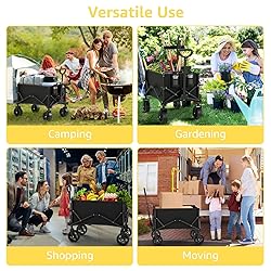 Massive Load Capacity & Spacious Storage: Easily haul up to 330 lbs with a large 120L interior-perfect for carrying everything from groceries to beach gear. Built for families and adventurers who need serious hauling power without breaking a sweat Space-Saving Foldable Design: Unfolds to 31.5" x 17.7" x 21.7" and folds down to just 7" wide-store it in your trunk, closet, or garage with ease. A must-have for those who value convenience and portability Smooth All-Terrain Navigation: 360° rotating front wheels and an ergonomic adjustable handle ensure effortless maneuvering on sand, gravel, grass, or pavement-experience total control wherever you go Premium Frame & Fabric Durability: Engineered with a heavy-duty 1.2mm steel frame and double-layered 600D Oxford fabric, this wagon offers rugged reliability for long-term outdoor use-built to withstand the toughest conditions Versatile All-Season Utility Wagon: Ideal for camping trips, beach days, family picnics, gardening chores, or weekend shopping—one cart to replace five bags. Don’t miss out on this customer favorite before stock runs low