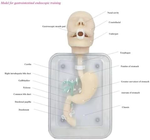 Gastroduodenal + biliary systemHighly simulated nasal cavity, oral cavity, epiglottis structureSoft and elastic materialAdult ratio 1:1Package includes:Gastroscopy training model*1