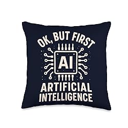 Artificial Intelligence OK But First AI design for data scientists, coders, machine learning engineers, computer geeks, tech lovers, AI developers, programmers, and robotics fans. Funny nerdy gift for smart people who love technology. AI themed gift for men, women, teens, and kids into computing, ideal for birthdays, Christmas, holidays, graduation, or geek-themed parties. Great gift idea for brother, sister, uncle, aunt, or tech-savvy family members. 100% spun-polyester fabric Double-sided print Filled with 100% polyester and sewn closed Individually cut and sewn by hand Spot clean/dry clean only