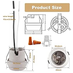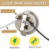 COMPATIBILITY: E26 medium base socket compatible with standard light bulbs up to 660W/600V rating for versatile lighting applications CONSTRUCTION: Durable porcelain ceramic construction with keyless snap-in design for secure bulb installation and reliable performance WIRING: Includes 2- Pack 6-inch black and white dual wires for easy installation and proper polarity connection MOUNTING: U-clip design allows for quick snap-in mounting to light fixtures and ensures stable placement SPECIFICATIONS: Keyless socket design with sturdy metal contacts for consistent electrical connection and heat resistance