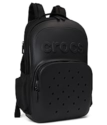 - Why get the same old backpack when you can make this one your own? Introducing the Crocs Classic Backpack, perfect for school, work, or whatever you need to ahul around. . Like all our totes and bags, it's durable, spacious, and as Classic as our clogs. The best part? You can add JIBBITZ charms to make your tote one-of-a-kind, unlike any other on earth. Form, function, a charming personality PLUS your stuff? You've got it in the bag. The Crocs backpack is durable, spacious, and has Jibbitz holes for personalization. Stylish bag with molded detailing like iconic Crocs shoes. Shop Now. Crafted from EVA and polyester blend. Dual adjustable, padded backstraps and a top grab handle. Zippered top closure. Zippered exterior front pocket. Twenty-six holes on the front pocket and three holes on the backpack strap. Two side pockets. Exterior back padded laptop compartment. Tread base for durability. Allover molded detailing. Polyester lining.