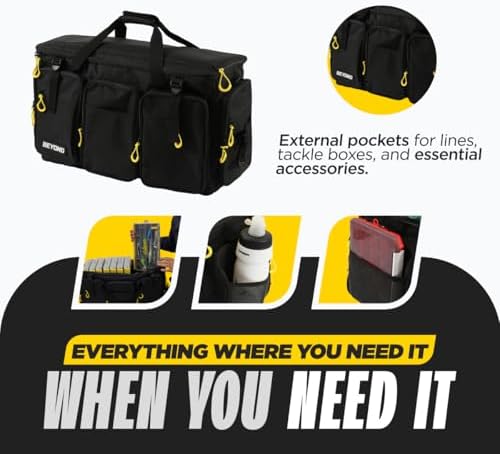 - SMART ORGANIZATION SYSTEM – Keep your gear ready for action with 20 total storage pockets, external mesh sleeves, tool holders, and a dedicated labeling zone for your line spools. The Beyond fishing tackle bag makes it easy to organize baits, tools, and accessories for fast access on the water.