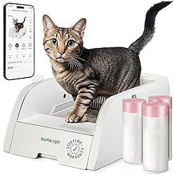 - Q: How long is each cleaning cycle? A: The PurrTek Light finishes a rake cycle in 4 minutes 30 seconds, keeping the box fresh automatically Q: Can I adjust the cleaning delay? A: Yes, the auto litter box offers delays of 1, 5, 10, 15, or 20 minutes, with 1 minute default Q: Is this a self cleaning litter box open top? A: Yes, it is an open automatic litter box with a rake system that cleans without a closed drum Q: What kind of litter should I use in the automatic cat litter box self cleaning? A: Use quick-clumping clay only. Q: How often should the waste bag be changed? A: Each 1.2-gallon bag lasts about 5 days, or up to 7 days for one cat in normal conditions Q: Can it support multiple cats? A: Yes, this scoopfree litter box works for up to three cats, though the waste bin will need more frequent changes Q: How often should litter be replaced fully? A: Replace all litter every 15–30 days and wash the pan at each change Q: Which parts are washable? A: The rake, waste bin, waste-bin lid, and pan are washable with mild soap; soak no longer than 20 minutes Q: What is the net weight of the unit? A: The small self cleaning litter box weighs 14.21 lb, easy to move but stable in use Q: What does the app provide? A: The Petcove App offers One-Click Cleaning, Timed Sleep schedules, delayed cleaning settings, and Health Management tracking Q: What are the power specs? A: Input is AC 100–240V, output DC 12V–1A, with rated power ≤ 7 VA and standby ≤ 0.5 VA Q: What are the operating conditions? A: The auto cat litter box self cleaning works indoors at 41–104°F and up to 93% humidity Q: How does this compare to scoop free cat litter boxes? A: It is an electronic litter box self cleaning with rake automation, giving the same scoop free convenience Q: What comes in the box? A: The package includes the unit, power adapter, roll of 20 garbage bags, and one carbon deodorizer ST: electric litter box, kitty litter box self cleaning, best small automatic litter box