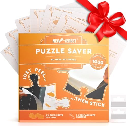 Newverest 6-Pack Puzzle Glue Sheets 10×10″ – Preserve & Display 1 × 1000-Piece Jigsaw Puzzles – Peel & Stick Puzzle Saver with 2 Adhesive Hangers – No Glue, No Mess, Ships Flat, Gift-Ready Box