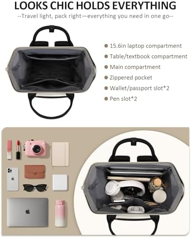 Laptop Backpack for Women, Large Capacity Work Business Backpack, 15.6inch Carry On Backpack Nurse Bag College Bookbag, Casual Daypack for Travel, beige