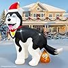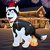 OurWarm 5 FT Christmas Inflatable Outdoor Decoration, Funny Christmas Inflatables Husky Dog Pooping, Christmas Blow Up Yard Decorations with LED Lights for Xmas Lawn Garden Party Christmas Decorations