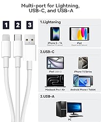 3 in 1 built-in cords (Lightening&USB-C&USB-A)