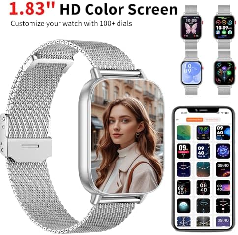 - 1.83" HD Touchscreen & Customizable Dials:This smart watch with text and call features a vibrant 1.83'' HD display (240×286 resolution) with ultra-responsive touch control and crisp visuals for seamless interaction. Personalize your sport watch with 100+ premium dial designs or upload your own photos—tailoring every glance to your style.