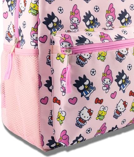 - OFFICIALLY LICENSED SANRIO HELLO KITTY BACKPACK: Make every day extra kawaii with this officially licensed Sanrio Hello Kitty and Friends backpack! Featuring Hello Kitty along with My Melody, Badtz-Maru, and Keroppi in an all-over print, this pink bag brings adorable fun to any school day. Perfect as a Hello Kitty school bag, bookbag, or toddler backpack, it's a charming addition to any Sanrio fan’s collection!