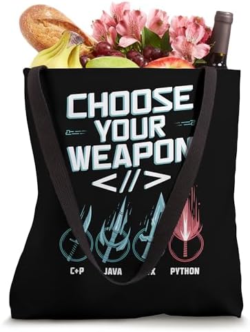 Choose Your Weapon C++ Java Python C# Programmers Tote Bag