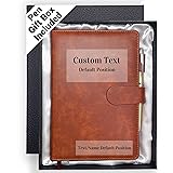 Personalized Notebook with Pen and Gift Box, Custom Text Leather Journal, Gifts for Women Men, Engraved Journals To Write In, Birthday, Best Friend, Mom, Sister, Corporate, Business Gift (Text-Brown)
