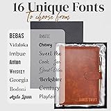 - Personalized Notebook Personalized Journal Custom Notebook Custom Journal Customized Notebook Personalized Leather Journal Custom Journal Cover Personalized Custom Notebooks Leather Journals Mens Notebook Elevate everyday writing with this handcrafted monogrammed leather journal. Designed in the USA, each custom notebook features deep, laser-engraved personalization that withstands daily use. The A5 size (8.4"x5.8") offers ample space for journaling dreams, business plans, or travel memories across 280 premium lined pages. The supple leather cover ages beautifully, while the integrated pen loop securely holds the included 5.5" stainless steel ballpoint pen. Choose from multiple engraving layouts to create meaningful gifts: commemorate a wedding date, emboss a company logo, or simply add initials for a sophisticated touch. Crafted in the USA: Every journal is designed and engraved by skilled artisans, ensuring meticulous attention to detail. Unmatched Personalization: Add a name, initials, or logo to create a gift as unique as the recipient. Perfect for birthdays, Mother’s Day, or graduations. Functional Design: The A5 size is portable yet spacious, and the refillable pages allow you to reuse the journal for years.