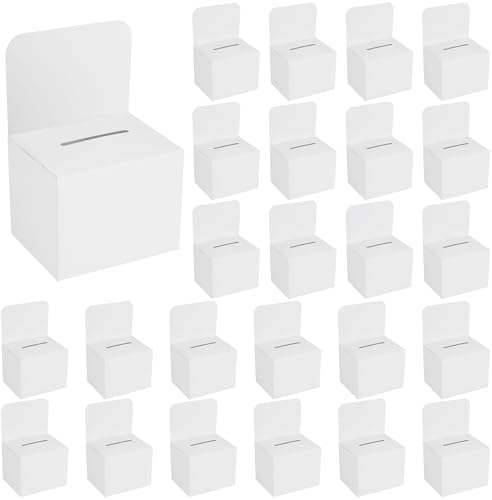 24 Pack Suggestion box,Raffle boxes with slot,Donation boxes for fundraising,White cardboard boxes6.5x4.5x4.5Inch,Ballot box with slot,For Collecting Business Card Voting Contest