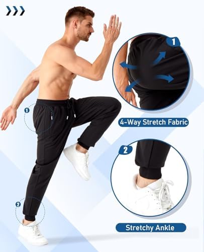 Mens Sweatpants with Zipper Pockets 5 Pack Athletic Joggers for Men Warm Slim Fit Track Workout Running Sweat Pants