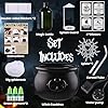 - VALUE SET:Magic floating potion bottle set includes a black witches cauldron,magic floating bottle,LED mist maker,water pump(fog machine and water pump are integrated),splash guard,straight tube,curved tube,3 green dyes,4 stickers,10g spider cotton,5 spiders,and instructions.Everything is ready,welcome to the magical world