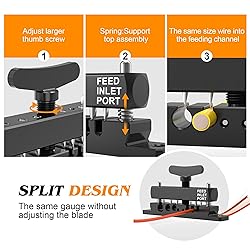 Universal: Wire stripper machine works with 0.12-0.35"(3.3-9mm) wires, handling everything from thin cables to thick wiring. Perfect for DIY or industrial recycling. Adjustable Blade Height: Wire stripper machine has an adjustable blade with thumb screw control for precise depth setting. No tools needed - just twist and strip for perfect results every time. User-friendly & Portable:Designed for effortless stripping with simple position-grip-pull action, our lightweight machine delivers clean cuts in one smooth motion. The compact, ergonomic wire stripping machine works perfectly for both workshop and on-the-go jobs. Durable & Rugged: Wire stripper machine is crafted from high-grade metal and carbon steel blades, built for heavy-duty stripping tasks and long-lasting performance. Optimized Performance: Our split-design wire stripper machine eliminates frequent blade adjustments, enabling fast and efficient wire cutting. Saves time and effort while maximizing cable recycling productivity.