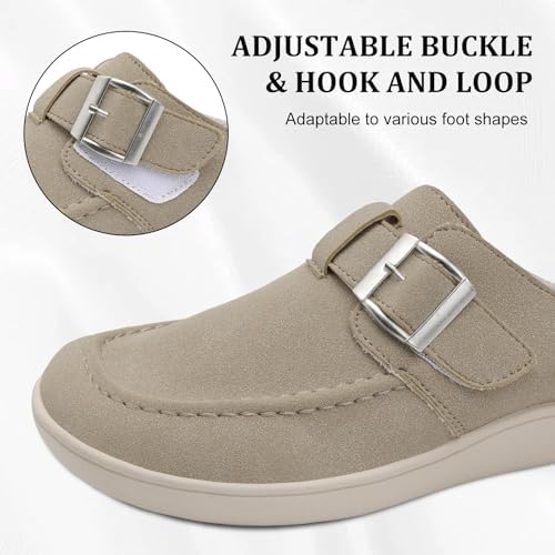 JOINFREE Womens Wide Suede Clogs Zero Drop Potato Shoes Diabetic Mules for Swollen Edema Comfort Slip on Clog Slippers with Adjuatable Buckle Indoor & Outdoor Use