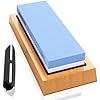 - 【Safety】We understand the importance of safety when using sharpening stones for knives, your purchase comes with a rubber base for holding the stone inside a non-slip bamboo base, this setup will ensure the wetstone is fixed in one place while sharpening. And knife sharpening angle guide allows you to maintain the correct angle and safely apply consistent pressure while sharpening the blade