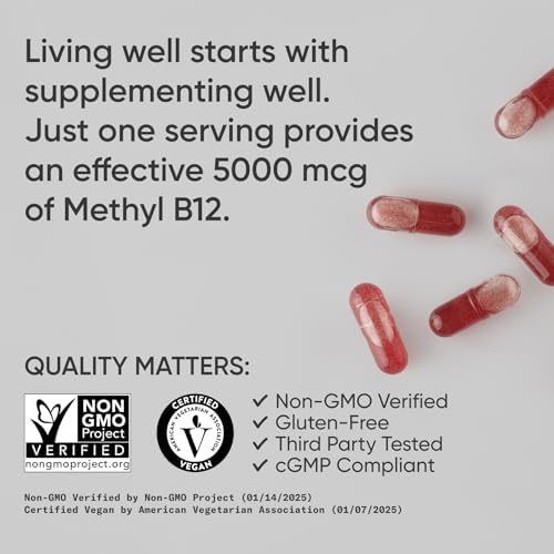 - DEDICATED TO QUALITY: Each liquid veggie capsule contains methylcobalamin, a form of vitamin B12 that’s essential for your body.—for a high-quality product free of harsh chemicals, fillers or binders that are also gluten-free, and soy-free.