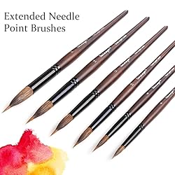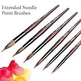 Dainayw 6 Pcs Extended Needle Point Brushes Set, Two Layer Liner Watercolor Brushes, Artist Brush for Art Detail, Leaves, Flower Drawing