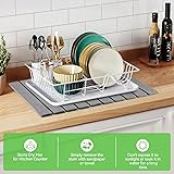 Ultra-Fast Drying & Superior Absorption: Crafted from diatomaceous earth, this stone dish drying mat instantly absorbs water and dries 3x faster than fabric pads. Keeps countertops dry, perfect for home, kitchens, bathrooms, or RVs. Its sophisticated appearance can perfectly match any decoration. Space-Saving Design: Unlike bulky racks, this foldable kitchen dry mat rolls up or folds flat and put into drawers or cabinets to save space. Use it as a travel-friendly bath mat, plant coaster, or outdoor patio tray Natural Diatomaceous Earth Material: Made from nature diatomite stone, this drying pad features strong water absorption, long-lasting durability, and heat resistance (up to 450°F). Ideal for drying baby bottles, pet bowls, outdoor mat, or as a trivet for hot pans Extra-Large & Anti-Slip: Made up of 10 small stone pads (Total dimensions: 23.23'' x 15.35'' ), it can be easily cut to your preferred size. The Large size drying stone mat for dishes provides ample space for plates, pots, and utensils. Features a non-slip mesh backing and included sandpaper scrubber to maintain peak absorbency—no wobbling or mess Multifunctional and Practical: More than a dish rack alternative! Use it as a kitchen mat, sink side mat, heat proof mat, bathroom stone mat, or pet feeding mat. Includes a sanding tool to refresh the surface—hassle-free cleaning for years of use! Using Tips: 1. If there are stains in the stone dish mat, you can use sandpaper to polish it. 2. Do not place it in water for a long time or expose it to the sun for a long time, otherwise it will crack easily. What You''ll Get: 1x stone mat, 1x non-slip mesh, 1x sandpaper, 1x Instructions. Any issues, please let us know.