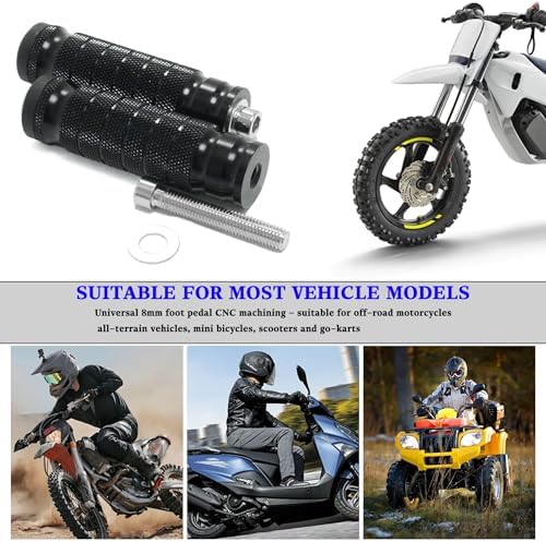 1 Pair Motorcycle Universal 8mm Foot Pegs,CNC Aluminum Motorbike Rear Footrests Non-slip Foot Rest Pegs Pedals For YAMAHA Honda Suzuki Kawasaki Ducati Aprilia (Black)
