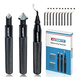 - DKIBBITH 13-Piece Deburring & Chamfering Tool Set.Engineered for precision edge finishing across multiple materials, meeting the demands of professionals and DIY enthusiasts.Advantages:1. Swivel Head & 10 HSS Blades 1pre-mounted + 10 premium spare blades. Swivel head dynamically contours curves, holes, and uneven surfaces for complete burr removal on metal/plastic.2. Dual Hardened Reamers for Precision Two 90° countersink reamers (Hardness HRC62-64) enable flawless chamfering, hole enlargement, and deburring on metal/wood/plastic in one step.3.Multi-Material Mastery Processes hardened alloys, engineering plastics, resins, etc. Effortlessly refines pipe interiors, gear teeth, 3D prints, and laser-cut edges.What's Included1 Main deburring tool (blade pre-installed)2× Countersink reamers10× BS1010 blades (individually sealed)Storage: Custom EVA-foam lined case prevents tool abrasion