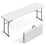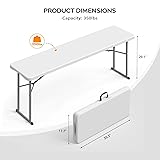 VINGLI 6 FT Narrow Folding Table, Tabletop Folded in Half, Premium Quality HDPE Material and Sturdy Metal Frame, Perfect for Buffet, Seminar, Party, Training, Home Work, White