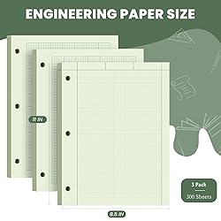 [Professional Engineering Paper]: This professional engineering paper 8.5 x 11, is crafted specifically for engineers, designers, and students who demand accuracy in every line. 3-pack, 100 sheets per pad, 300 sheets total. Graph paper pads 8.5 x 11 for technical sketches, schematic diagrams, and structured notes. The format supports clean, organized work, making the engineering notebook the perfect tool for both academic and professional environments [Clear 5x5 Grid & Standard Layout]: Engineering computation pad 8.5 x 11 features printed 5x5 grids (five squares per inch) on the back side, subtly visible from the front for precise alignment. Each grid paper notebook sheet includes a standard header and margin lines for consistent formatting and easier documentation, ensuring your work always looks professional and well-structured [Eye-Friendly Green Tint & Premium Quality Paper]: Engineering paper notebook 8.5 x 11 with soothing green background is designed to reduce eye strain during long work sessions. Combined with high-quality 70GSM paper that resists ink bleed-through, this engineering paper pad 8.5 x 11 provides a smooth writing experience—ideal for architects, engineers, and students who require lasting clarity and comfort [Glue-Top Binding with 3-Hole Punching]: The Engineering paper notepad 8.5 x 11 adopts a convenient top-glue binding that allows for easy tear-off without damaging the sheet. Engineering paper loose leaf 3-hole punched design fits most standard binders, making organization simple. A rigid chipboard backing provides added support for writing on the go or without a desk [Versatile for Multiple Applications]: From classroom assignments to engineering designs and architectural drafts, this engineering notebook 8.5 x 11 adapts to a variety of tasks. Suitable for students, professionals, and hobbyists alike, engineering notebook graph paper supports planning, sketching, calculating, and more—perfect for both technical and creative use