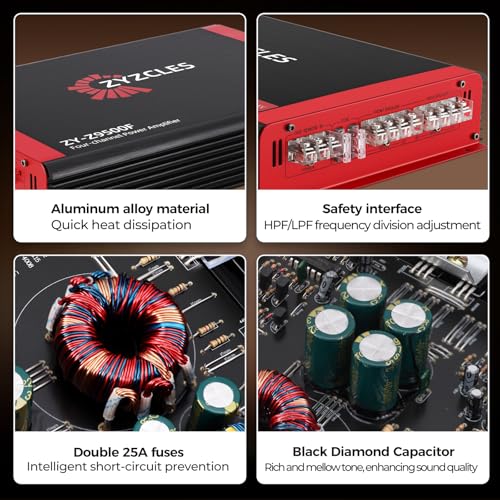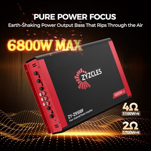 2026 Upgraded ZYZCLES 4-Channel High Power Car Amplifier, 6800W Max Power, 4X1700W RMS 2 Ohms 4 Channels 2 Bridged Channels(3400W), Class AB, Low Distortion - Unleash Studio-Quality Sound in Your Ride