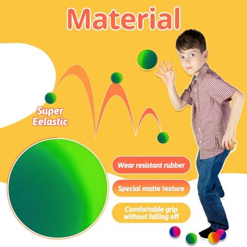 • Package Includes:You will receive 6 jumbo bouncy balls.The diameter of the elastic ball is 1.8 in/45 mm,which can be comfortably placed in the hand and is suitable for most people to grip and play,enhancing hand eye coordination.