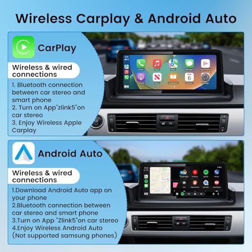 Note: Suitable For Bmw 3 Series E90 2007 2008 2009 2010 2011 2012 OEM NO Screen, if ApplicableDetailed Parameters:1.Built-in Car Play & Android Auto;2.Supports USB input;3.Supports all formats of audio play back;4.Supports USB interface camera, USB DVR;5.Supports CarPlay/Android Auto/Mirror Link (Android and IOS);6.Internal Bluetooth, play stereo music through Bluetooth from your mobile phone;7.Internal WIFI, supports Wi-Fi and hot-spot sharing;8.Supports car rear view camera(aftermarket RCA type backup camera, if you want to confirm the original factory backup camera, please offer more information and ask the question before your purchase if you really care about this function,because we can not promise our radio support all the original factory backup camera);9.Capital screen supports multi-touch screen. Sensitive IPS full HD;10.Small radiation interference, enjoy the much better radio reception;11.Supports steering wheel control;12.OSD language: English / French / German / Spanish / Italian etc. over 20 kinds of language.Delivery Contains:1x Car Android Head Unit with Mask;1x Power Cable(Plug & Play);2x USB Port Cable;1x RCA Expand Cable;1x RCA Connector for Reverse Camera;1x Install Kit(GIFT);1x External Mic(GIFT);1x AHD 720 Reverse Camera(GIFT)