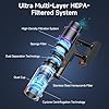 - Advanced Filtration for Cleaner Air:Breathe easier with our cordless stick vacuum equipped with a 6-stage filtration system, including a HEPA filter that captures 99.99% of particles as small as 0.1 microns. Ideal for allergy sufferers, this vacuum ensures that not only your floors but also the air in your home stays fresh and clean. Say goodbye to allergens and hello to a healthier living space with this high-performance wireless vacuum cleaner for home