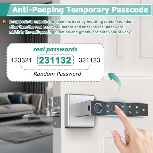 - 【Family Members Sharing and Management】Fingerprint door lock with handle can share smart home access with family members and establish member-specific access permissions. Administrator can assign different roles to family network members based on permission requirements. Smart lock can assign temporary permissions to meet your demands in daily life. It supports the creation of dynamic temporary passwords on the APP, use this function to open the door for your family, friends and guests when you are not at home.